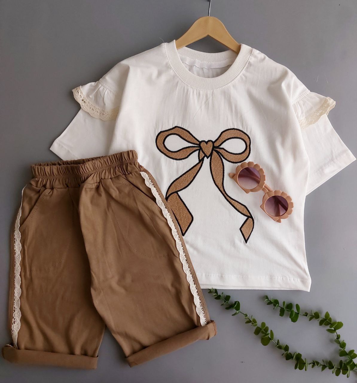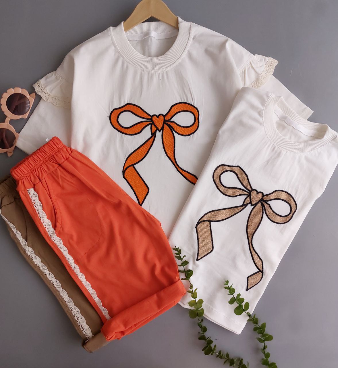 💥تیشرت شلوارک پنبه گلدوزی پاپیون
