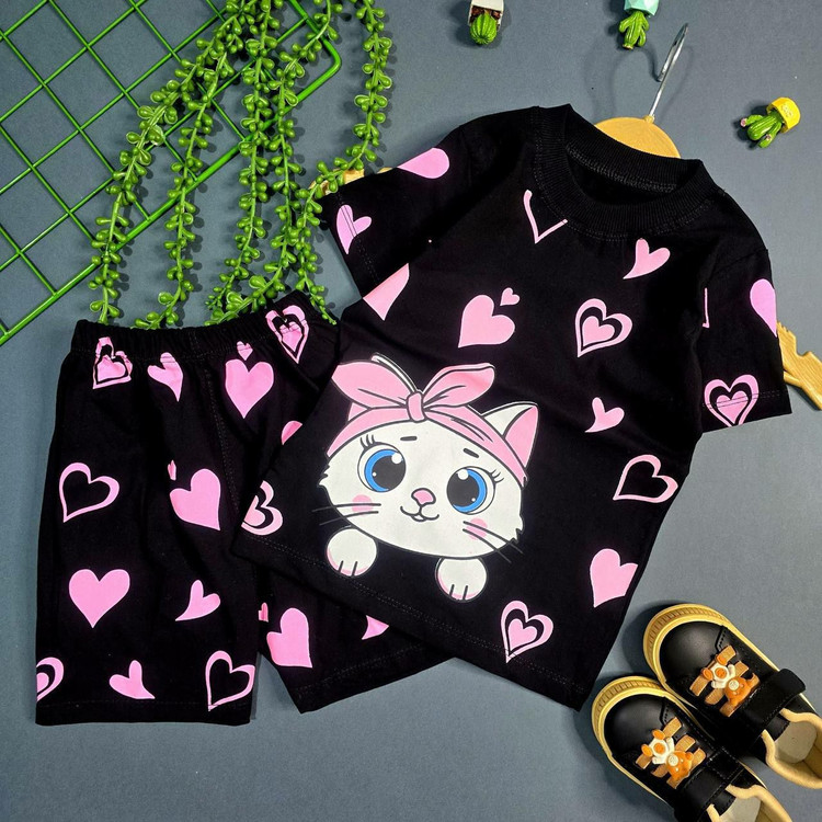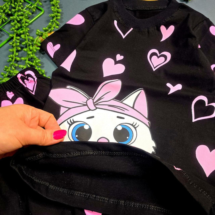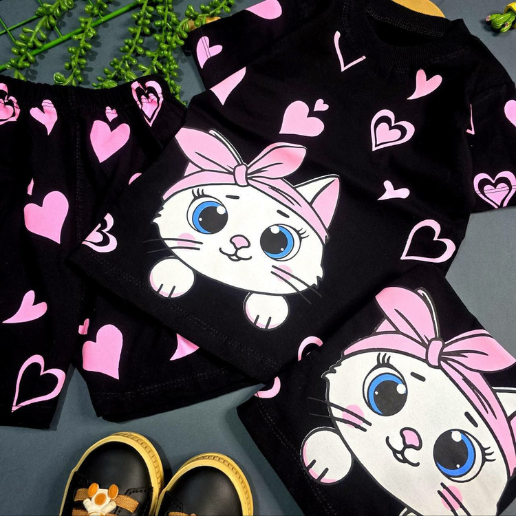 تیشرت شلوارک دخترانه طرح گربه