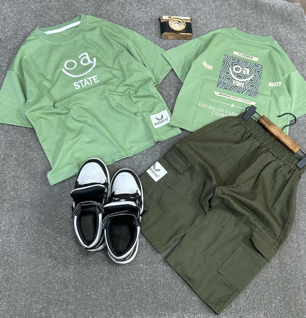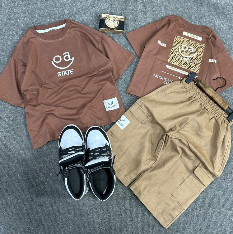 تیشرت شلوارک لبخند جنس نخ پنبه و کتان