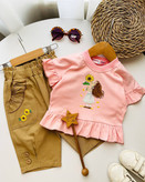 کراپ شلوارک دخترانه، تیشرت شلوارک دخترانه طرح آفتابگردون