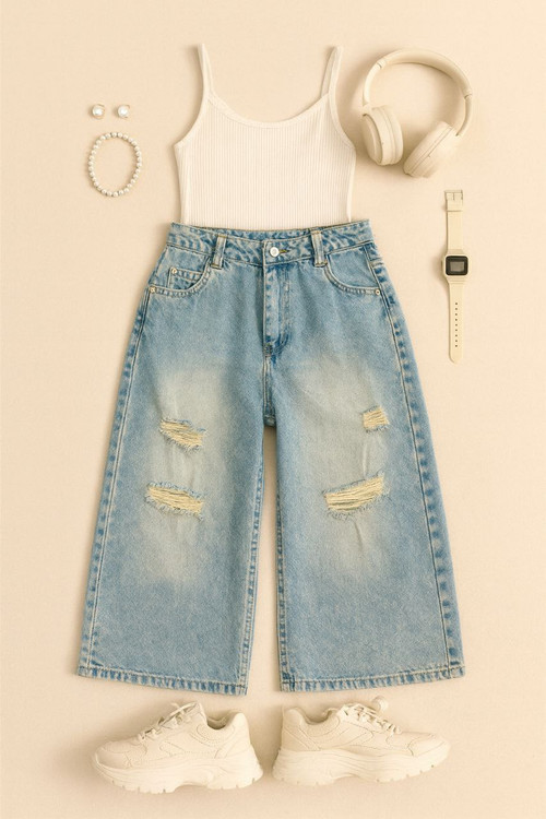 😎 شلوار لی واید لگ دخترانه زاپدار