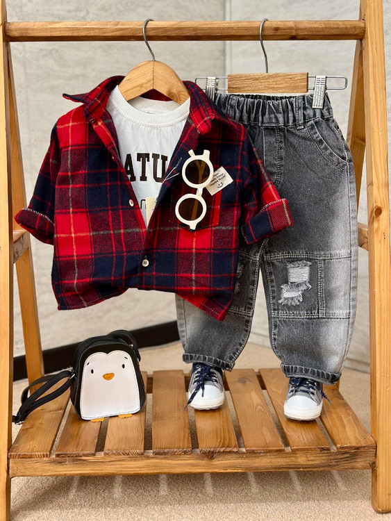 📏 سایز 3 | بلندی شکت 41 | پهنا 33 | بلندی آستین از کنار یقه 38 | بلندی شلوار 54 | بلندی تیشرت 39 | پهنا 32