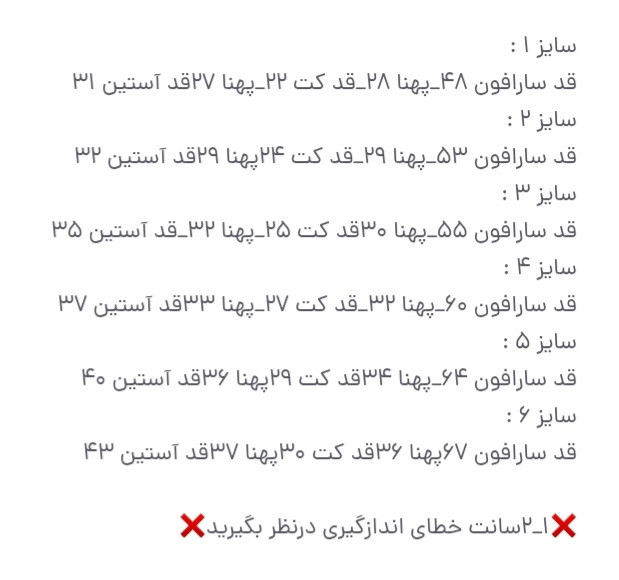 سایزبندی محصول در تصاویر اسلاید سوم گذاشته شده