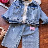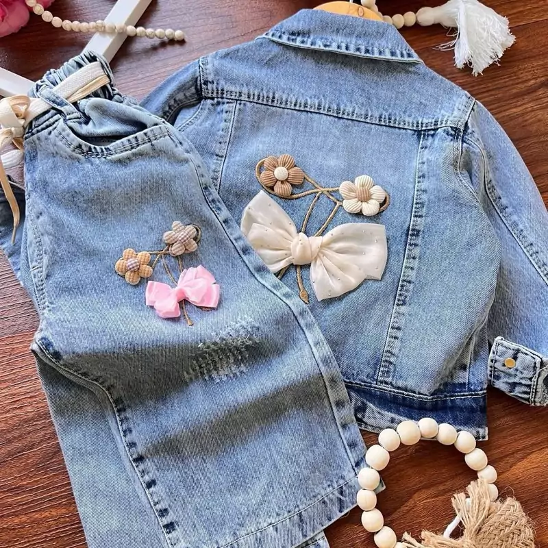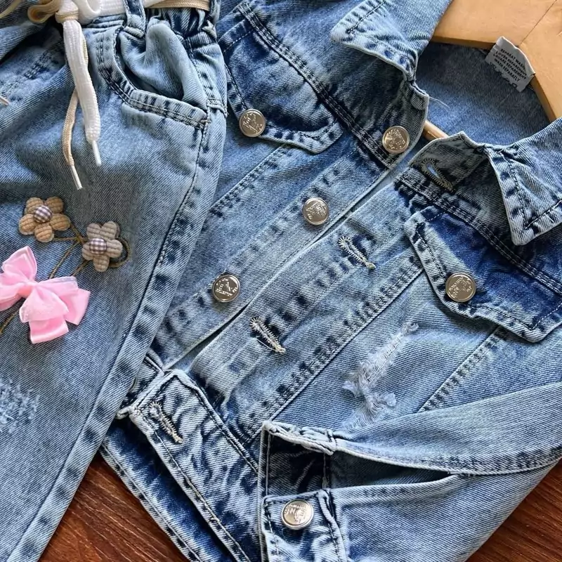 کت شلوار بچگانه، کت شلوار جین دخترانه. ست دو تیکه دخترانه
